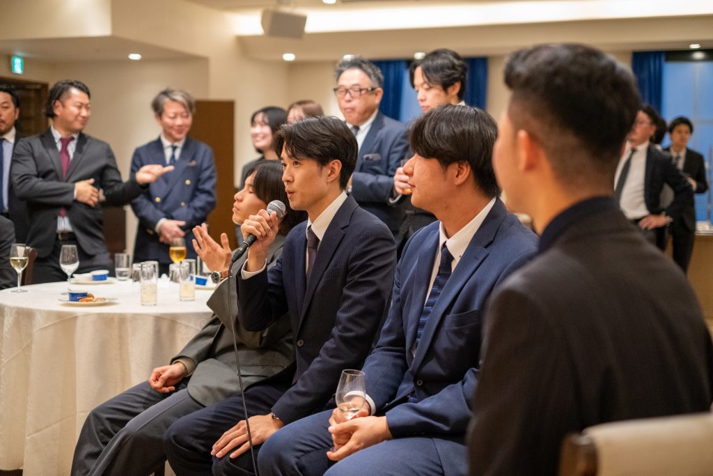 チャペルで厳かに入社式が執り行われた後は、バンケット会場に移動し、懇親会を行いました。