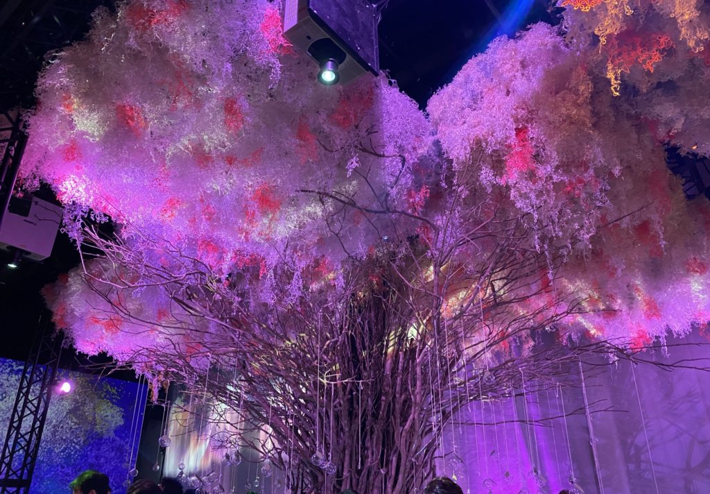 fLOWERS OF NAKEDでは、お花と最新の映像技術、アロマや音楽が融合した、非日常的な空間が広がっています。