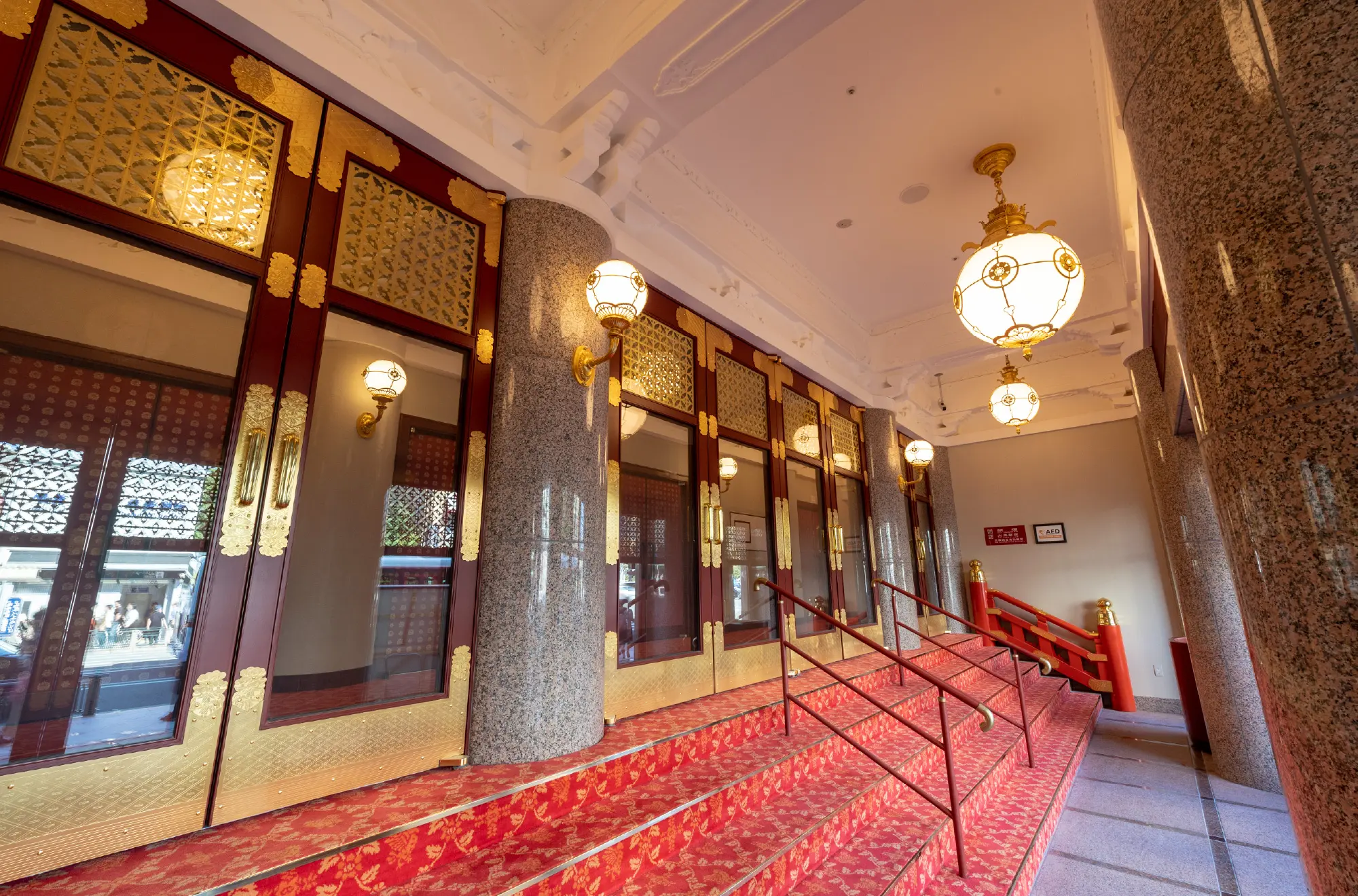 由緒ある櫓を構えた桃山風破風造りの典雅な劇場で、建物自体も国の登録有形文化財や京都市の歴史的意匠建築物に登録・指定されており、随所に歌舞伎劇場特有の「日本らしさ」を感じて頂けます。